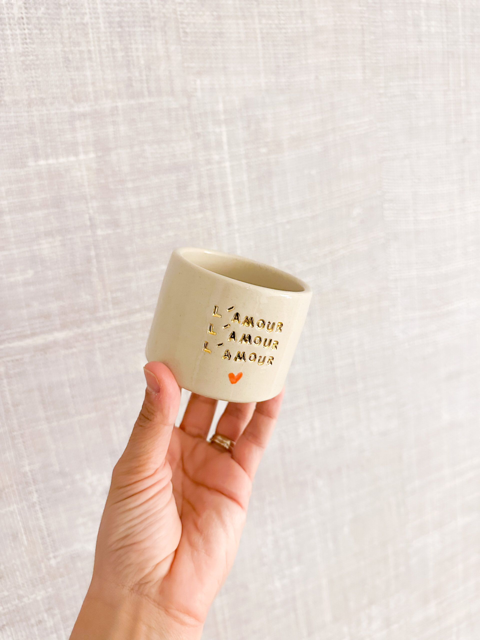 Empreinte OR sur les 3 mots et coeur rouge lumineux